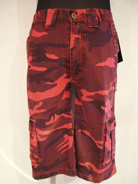 REDカラーのカモ柄デザインが目立つ事間違いなしのウォークショーツです。