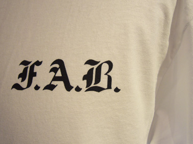 ★西井プロデザイン、FABジップパーカー[24UPDATE ZIP]を紹介します!バックにデザインされた、FABロゴがインパクトあります!左袖部分にも、FABのロゴが入っています。まだまだ、使えるジップパーカー、30%OFF!絶対お得ですよ〜!!