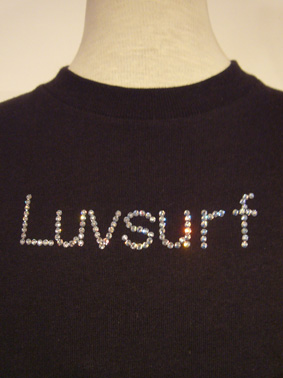 フロントのLUVSURF の文字はラインストーンでデザインされています。クリアカラーのストーンとブラックカラーのストーンと2パターン揃っております。